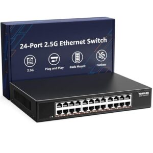 YuanLey 2.5G スイッチングハブ 24ポート 2.5GbE RJ45 24ポート 120Gbps 即挿し即使用 静音 ファンレス 金属筐体 LANスイッチ