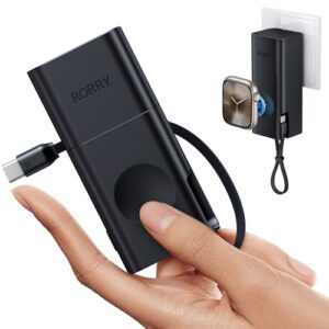 RORRY 2025革新モデル モバイルバッテリー コンセント一体型【超小型・ACアダプター取り外し・USB-Cケーブル内臓】Apple Watchモバイルバッテリー 5200mAh パワーバンク iPhoneとiwatch同時充電 折りたたみ式ACプラグ PD20W急速充電 3台同時充電 パススルー iPhone17/16/15/Applewatch ultra2/10/9/8/7などに対応
