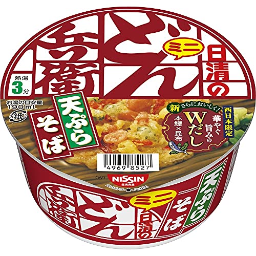 どん兵衛 天ぷらそばミニ (西)は日清食品のカップ麺で、46gのミニサイズが12個入りです。サクサクの天ぷらとコシのあるそばが特徴で、手軽に美味しいそばが楽しめます。
