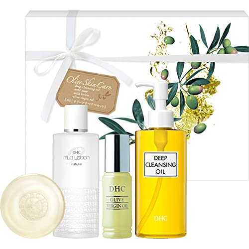 DHCオリーブすべすべセットIは、オリーブオイルを配合したクレンジングと洗顔料、保湿クリームの3点がセット。肌に優しく、しっとりとした仕上がりを実現します。