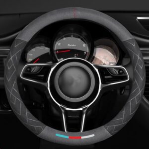 TATACLEA ハンドルカバー スエードタッチハンドルカバー ステアリングカバー 自動車汎用 高級 触感よく 滑り止め 汚れ防止 オールシーズン対応 38cm O形(ダイヤモンドパターン)