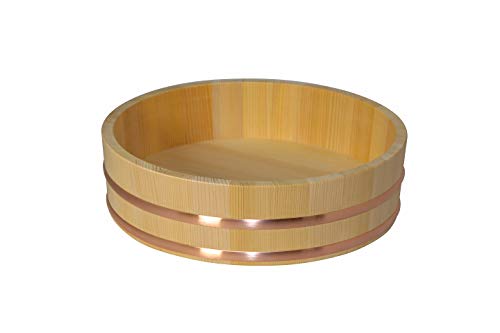 志水木材産業の木曽さわら製寿司桶(1尺1寸、5合用)は、伝統工芸の技術を用いて作られた日本製の高品質な製品です。直径33cmの飯切や飯台としても使用可能で、耐久性と美しさを兼ね備えています。