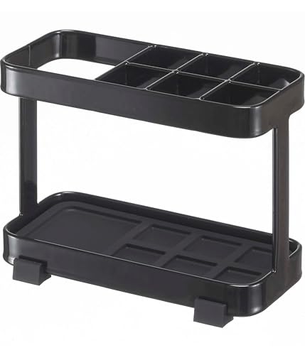 山崎実業のトゥースブラシスタンド(ブラック)は、約W11×D5×H8cmのサイズです。シンプルなデザインで洗面所にぴったり。歯ブラシの整理に最適なアイテムです。