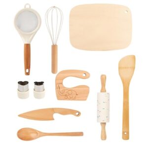 子供用キッチンツールセット 調理道具 キッズ クッキング セット 子供用調理セット 野菜や果物切り 麺棒 ふるい まな板 10点セット 幼児用カッティングセット 実践能力育成 生活スキル向上 木製 台所用品 キッチン用品 キッチンアクセサリー