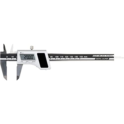 シンワ測定のデジタルノギス19983は、150mmの測定範囲を持ち、ソーラーパネル搭載で電池不要。精度は0.01mmで、使いやすい大画面表示が特長です。