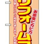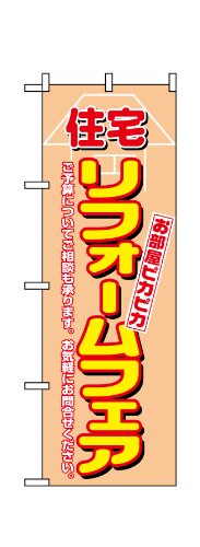 のぼり屋工房の「のぼり旗 1462 住宅リフォームフェア」は、W600×H1800mmのサイズで、三方三巻仕上げです。商売繁盛を願うデザインの受注生産品となっており、店舗やイベントでの集客に最適です。
