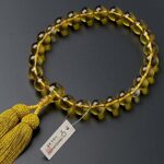 滝田商店の男性用京念珠は、黄水晶22玉と正絹頭付房を使用。すべての宗派で使用可能で、数珠袋付き。証明書付で安心の品質。