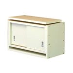 JAJAN耐震収納家具じしん作くんは、幅58cm、奥行29cmで隙間高35-67cmに対応。転倒防止機能があり、天井つっぱり式で地震対策に最適な国産ホワイト収納です。