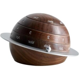Vlfn カレンダー ブラックウォールナット無垢材 クリエイティブ木製惑星型回転式卓上永久カレンダー ヴィンテージスタイル ホームデコレーション 装飾アクセサリ