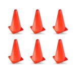 Championスポーツの9インチオレンジコーンセット(6個入り)。運動やトレーニングに最適。耐久性があり、視認性の高いデザインで、安全に使用できます。