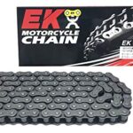 EK(イーケー) 強化ノンシールチェーン 428SRは、スチール製で124Lの長さを持ち、クリップジョイントで簡単に取り付け可能です。耐久性に優れ、様々なバイクに対応します。