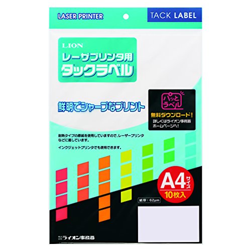 ライオン事務器のタックラベルLPR-3205は、A4サイズの印刷用ラベルで、レーザーおよびインクジェット対応。10片が1シートに配置され、合計10枚入り。高品質な粘着剤でしっかり貼り付き、クリアな印刷が可能です。