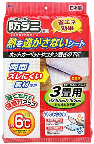 ワイズの防ダニアルミホットンシートは、約2400x1800x2mmのサイズで、3畳用として利用可能。ダニやホコリを寄せ付けず、清潔な環境を提供します。