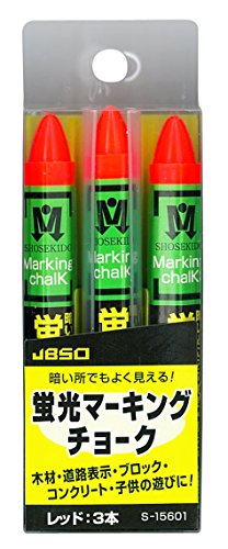 JBSO 蛍光マーキングチョーク 3本入 レッド S15601は、鮮やかな赤色の蛍光マーキングチョークです。屋内外の使用に適しており、視認性が高く、様々な素材に描けるのが特徴です。