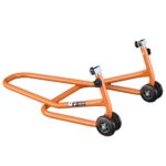 ジェイトリップ(J-TRIP)のロングローラースタンドJT-120QRは、オレンジ色のバイクメンテナンススタンドです。受け金具は別売りで、安定性と使いやすさを備えています。