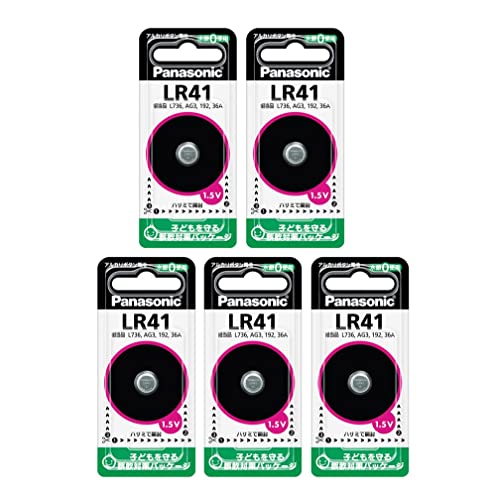 パナソニックのLR41Pはアルカリボタン電池の5個セットです。主に時計やデジタル機器に最適。長寿命で安定した電圧供給が特徴です。