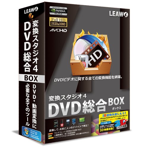 変換スタジオ 4 DVD総合 BOXは、映像を高画質に変換するソフトウェアです。特典として3Dメガネが付属しており、立体映像も楽しめます。映画やアニメをより迫力ある映像で体験できるアイテムです。