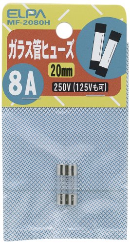 エルパのガラス管ヒューズMF-2080Hは、250V 8A対応の20mmサイズで、配線保護に最適です。2個入りで、安心して使用できる品質です。