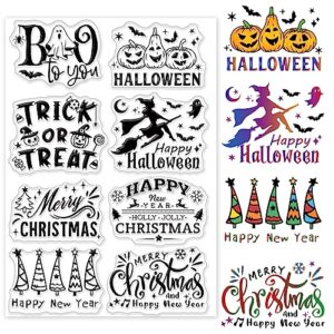 INFUNLY メリークリスマス 単語クリアスタンプ カード作成用 ハロウィンシリコンスタンプ ジャーナリズム用 ハッピーニューイヤー ゴム印 単語透明スタンプ DIY スクラップブッキング アルバム装飾 ペーパークラフト