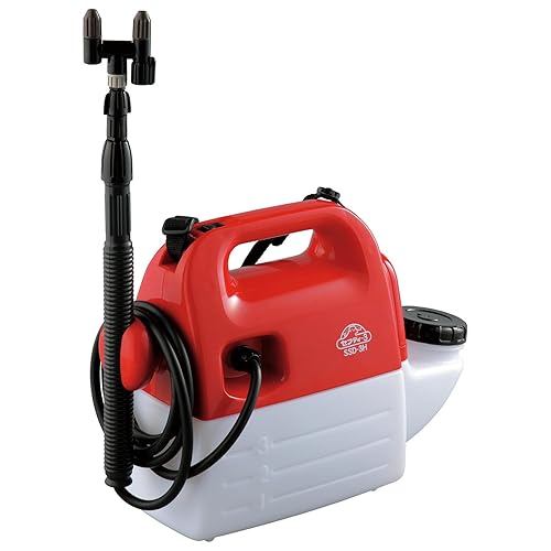 セフティー3 ハイパワー電池式噴霧器 SSD-3Hは、容量3Lでホース1.7m、ノズルは40~90cmに調整可能。1頭2頭切替機能により効率的な噴霧が可能です。