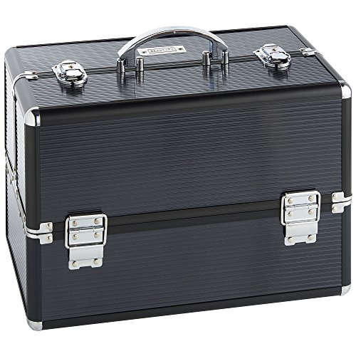 ラージプロフェッショナルアルミニウム製のブラックビューティーメイクアップネイルコスメボックス。スタイリッシュで機能的、メイク道具やネイル用品を整頓し、美しい収納を実現します。