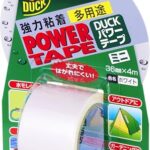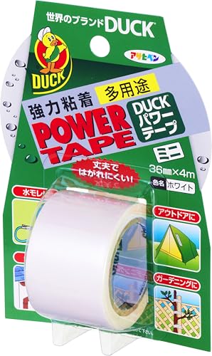 アサヒペンの多用途補修パワーテープは、36mm x 4mのホワイトで、強力粘着と水滴に強い特性を持つアメリカ製のテープです。DUCKブランドの製品で、非常に頑丈です。