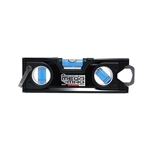 シンワ測定のハンディレベルMEGA-MAGは、150mmの黒いボディにマグネット付き。精密な水平確認が可能で、持ち運びにも便利です。