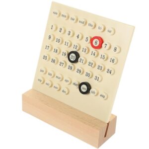 KICHOUSE 円形パーペチュアルカレンダー ABSと木材製カレンダー飾り 卓上デスクトップ装飾 オフィス 書斎 リビング用日付表示スタンド