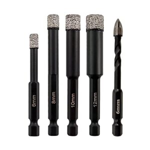 ダイヤモンドの穴あけ工具- 6/8/10/12mm+6mm の石工の穴あけ工具は磁器のタイルの陶磁器の石の花こう岩の大理石のためのセットを見ました、六角形のすねのダイヤモンドの穴は穴あけ工具を見ました