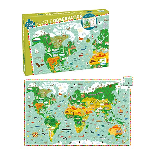 DJECO 地図パズル アラウンド ザワールドは200ピースのパズルです。世界の地図をカラフルにデザインし、地理を学びながら楽しめます。子供向けの知育玩具として最適。