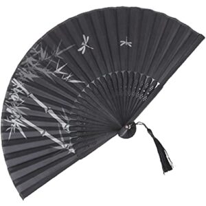 中国風扇子 ミステリアスなクラシックブラックプリントレディースハンドファン、 アフタヌーンティーパーティー用の冷却ツール、 アートデコレーション (Color : Black-F, Size : 38cm*4)