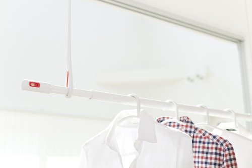 NASTAのAirHoop(エアフープ)は、室内用の天井直付物干し金物です。ボードアンカー付きで、設置が簡単。ホワイトとレッドのカラーで、おしゃれなインテリアにもマッチします。