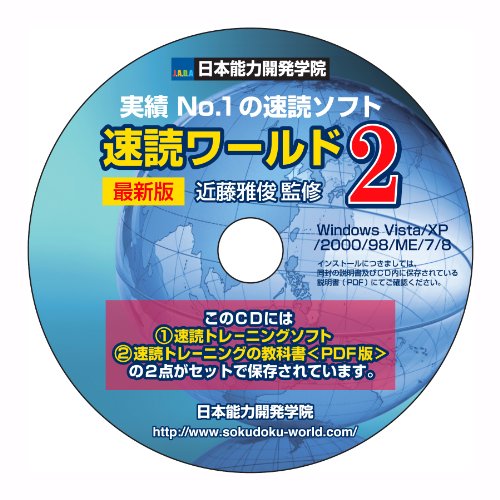 速読術トレーニング書籍とソフト「速読ワールド2」のセット。初級から上級まで対応で、特典も付属。効率的な読書を目指すための必携アイテム。
