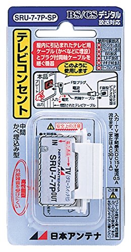 日本アンテナのテレビコンセント SRU-7-7P-SPは、薄型デザインで壁面取り付けが容易なモデルです。優れた信号伝送性能を持ち、地上波・BS・CS放送に対応。グランド端子付きで、安心して使用できます。