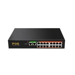 スイッチングハブ 18 ポート POE ネットワーク スイッチ 16 ポート 100M POE+2 ポート 1000M アップリンク 52V 190W 3.85A VLAN 250 メートルの距離 POE カメラ/NVR/ルーター用 電力を節約(TXE191)