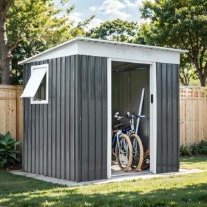 大型屋外用物置 スチール製大容量収納庫 防水耐候性強化 頑丈設計 引き戸両開きタイプ 換気口付き ガーデン農場ツール収納対応 床なし構造