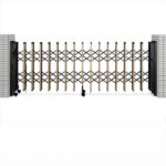 YKKAP 伸縮ゲート レイオス2型(太桟)両開き親子12-40W H14 PGA-2は、カーゲートとして使用可能な伸縮門扉です。色はカームブラックで、デザイン性と機能性を兼ね備えています。