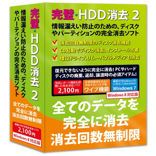 完璧・HDD消去2 Windows8対応版は、高速かつ安全にHDDを消去するソフトウェアです。複数の消去規格に対応しており、プライバシーを守るための信頼性の高い選択肢です。