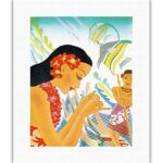 海のギフト – ハワイアン女性釣りネットを修復( _ Upena ) – Vintage Ocean Linerメニューカバーby Frank Macintosh c.1930s – ハワイアンFineアートプリント 11″ x 14″ Rolled Canvas APBX213の高価買取