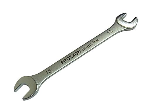 PROXXON DAIKITOOLのスリムライン両口スパナは、12mmと13mmのサイズがあり、狭いスペースでの作業に最適です。高品質な材料を使用し、耐久性と使いやすさを兼ね備えています。