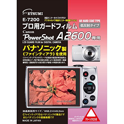 ETSUMIの液晶保護フィルムプロ用ガードフィルムARは、Canon PowerShot A3500IS/A2600専用で、耐久性があり、傷や汚れを防ぎます。高い透過率でクリアな視界を提供し、簡単に貼り付け可能です。