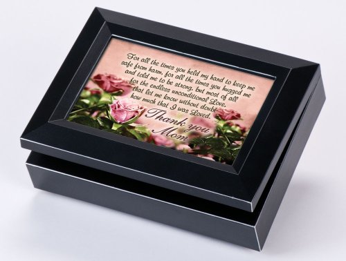 Cottage GardenのThank You Momブラックデジタル音楽ボックスは、エレガントなデザインのジュエリーボックスです。名曲「The Rose」を奏で、特別な思い出を閉じ込める美しいアイテムです。