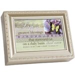 Cottage Gardenのシルバートーンジュエリーオルゴールは、ロープトリムが施され、美しいアメイジング・グレイスの旋律を奏でます。贈り物やインテリアに最適です。