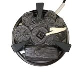 ヤマキ電器の茶道具、遠赤外線ヒーターYU-001-Cは五徳付きで、強(500W)・弱(200W)に切替可能。直径17cm、高さ11cmの陶器製で、日本製。茶釜や鉄瓶に対応。