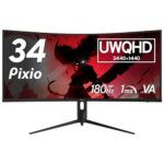 Pixio PXC348C NEO ゲーミングモニターは、34インチの湾曲デザインで180Hzのリフレッシュレートを提供。UWQHD解像度とFast VAパネルを採用し、Type-C接続にも対応しています。