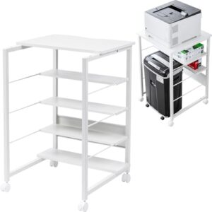 サンワダイレクト プリンター台 キャスター付き 幅60×奥行60×高さ90cm 可動式中棚 分割式天板 総耐荷重50kg 4段 シュレッダー 収納 プリンターラック ホワイト 100-RAC020W
