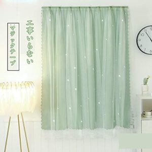 カーテン二重 姫系遮光カーテン 透かし彫り星柄 おしゃれ かわいい マジックテープ掛け シェードカーテン2枚組組幅100cm丈120cm ライトグリーン)