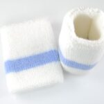 バスケットテニスやヨガに最適なホワイト/ブルーのリストバンド1ペア。吸汗速乾素材で快適な着用感を実現。スポーツ時の汗をしっかりキャッチし、手首を保護します。