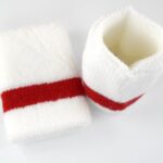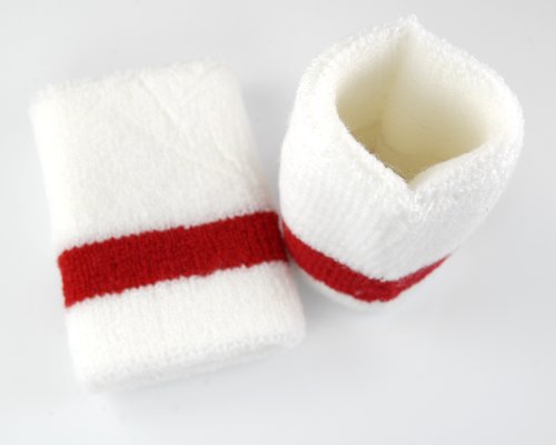 バスケットテニスやヨガに最適なスポーツリストバンド。ホワイトとレッドの1ペアで、吸汗性が高く快適なフィット感を提供。運動時のサポートに最適です。