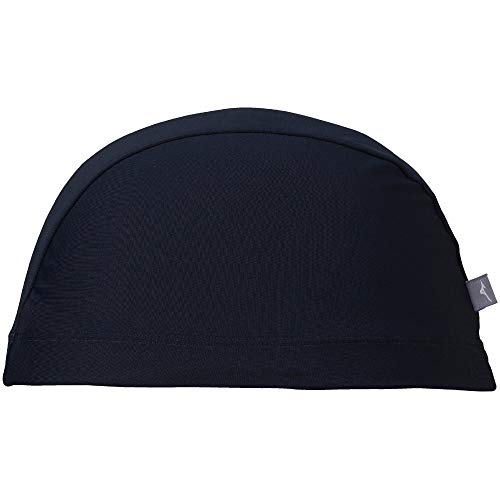 MIZUNOのスイムキャップ、2WAYタイプは縦横に伸びる設計で、ゆったりサイズ。競泳用に最適で、ダークネイビーのカラーはシックでスタイリッシュ。快適な着用感を提供します。